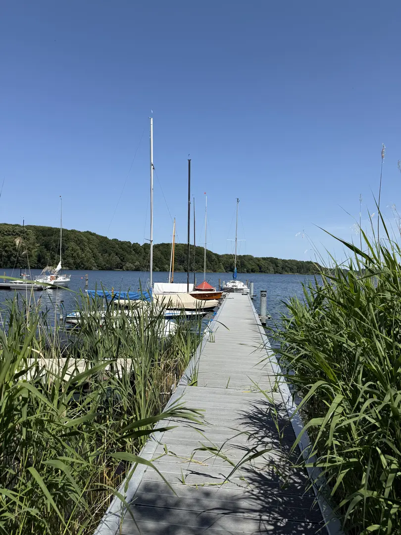 Besonderheiten & Navigation: In Ufernähe liegen flache Bänke; bitte Tonnen und Abstände zu Schilfgürteln einhalten. Badebereiche sind deutlich markiert – mit langsamer Fahrt passieren.
